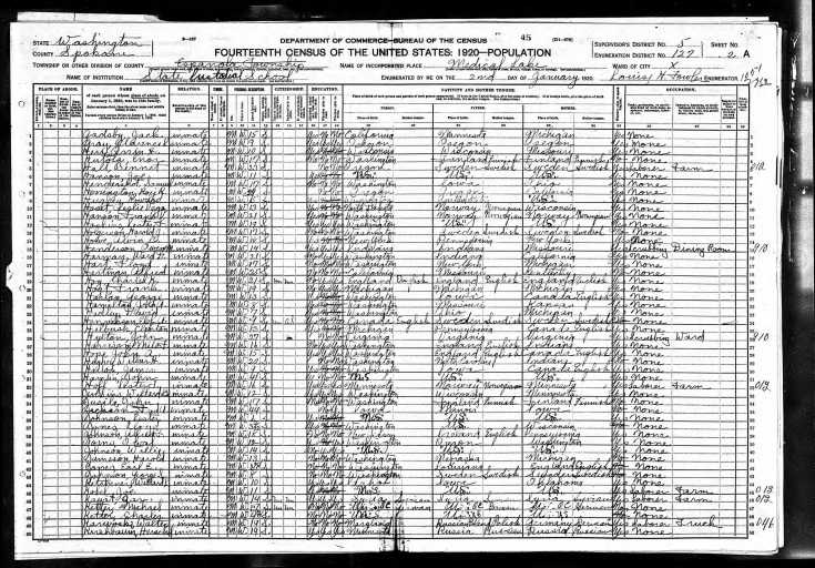 In 1920 (line #45), I found Joe C. Kobel living in Espanola, Spokane, Washington, USA, not with his mother (and her new family), nor with his biological siblings and father. In fact, he was listed as an ‘inmate’ (at age 11) at the State Custodial School (also known as the Eastern State Custodial School and now known as Lakeland Village).