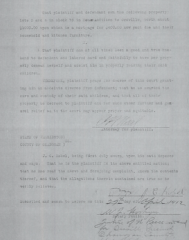 J.C. Kobel, Plaintiff. vs. Mertle M. Kobel, Defendant.